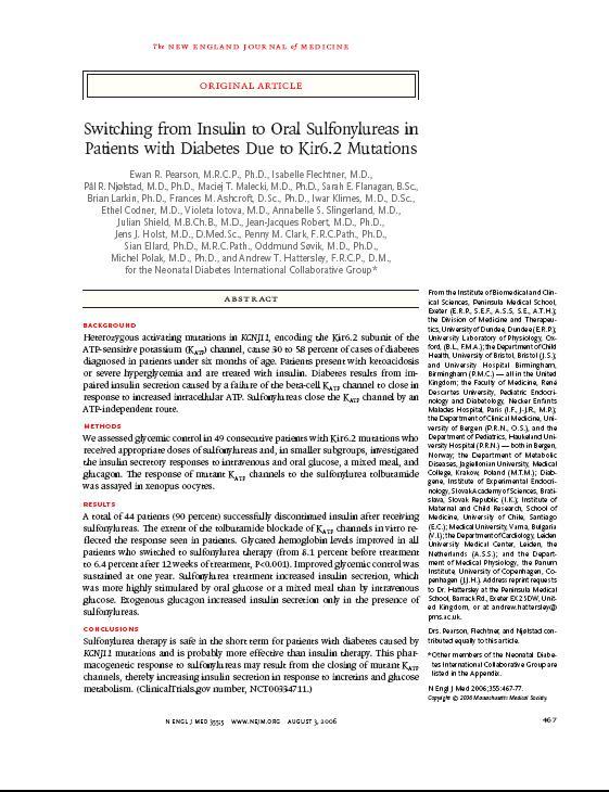 Nedávno skončená medzinárodná štúdia dokázala, že deriváty sulfonylmočoviny prinavrátia funkčnosť mutovaným draslíkovým kanálom a tým obnovia uvoľňovanie inzulínu. Odbúrajú tak nutnosť pichania inzulínu tam, kde sa sekvenáciou génu dokáže mutácia. Tento prístup zlepšuje kompenzáciu cukrovky a kvalitu života pacientov, ako aj ekonomiku terapie. Liečba sulfonylmočovinou má pre novorodeneckú cukrovku kauzálny charakter a je klasickou ukážkou farmakogenetiky, lebo genetická príčina tu určuje výber liečby. Výsledky tejto štúdie, ktorá je míľnikom v diabetológii, boli uverejnené v mimoriadne prestížnom časopise New England Journal of Medicine (2006; 355:467-77), o čom svedčí jeho tretí najvyšší impakt spomedzi biomedicínskych časopisov na svete. Podiel Slovenska na vzniku tejto publikácie je vyjadrený spoluautorstvom Prof. MUDr. Iwara Klimeša, DrSc. z Ústavu experimentálnej endokrinológie SAV a jeho vedeckých a klinických spolupracovníkov. Z objavenia novej príčinnej liečby novorodeneckej cukrovky bude síce celosvetove profitovať relatívne malý počet diabetikov, ale je dôležitým kamienkom v mozaike poznania ďaleko častejších, polygénne podmienených foriem cukrovky a praktickou ukážkou uplatňovania princípu translačného výskumu v medicíne.