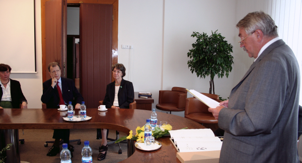 Predpoludním z rúk prof. Štefana Lubyho Čestnú plaketu SAV Jána Jessenia za zásluhy v lekárskych vedách prevzal rektor Slovenskej zdravotníckej univerzity a prednosta gynekologickej kliniky Fakultnej nemocnice s poliklinikou I. Dérera v Bratislave prof. MUDr. Ján Štencl, CSc.