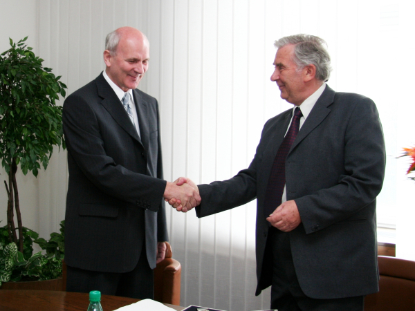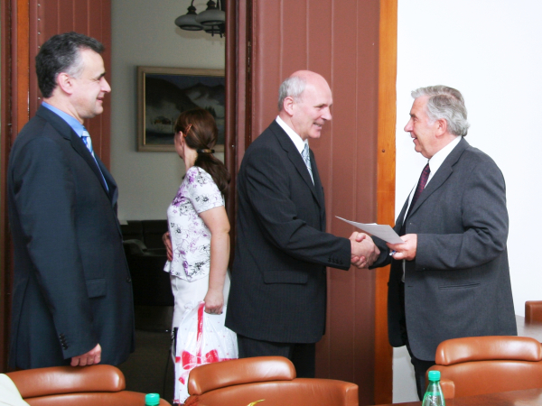 Poslanec NR SR František Mikloško v stredu 20. júna z rúk prof. Štefana Lubyho prevzal Medailu SAV za podporu vedy.