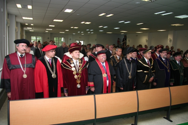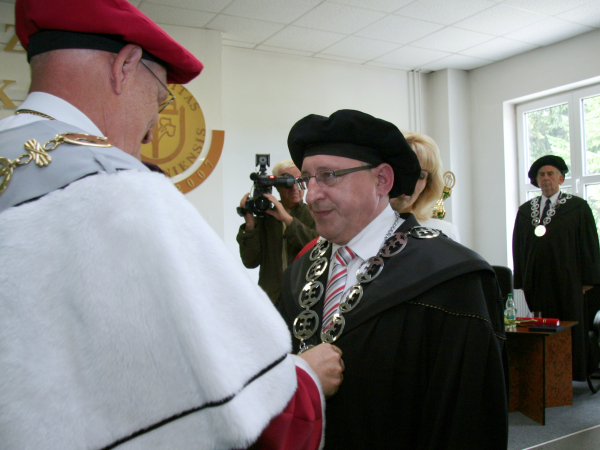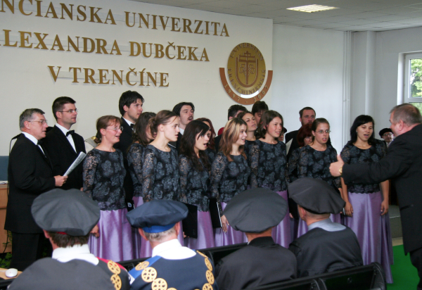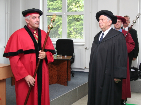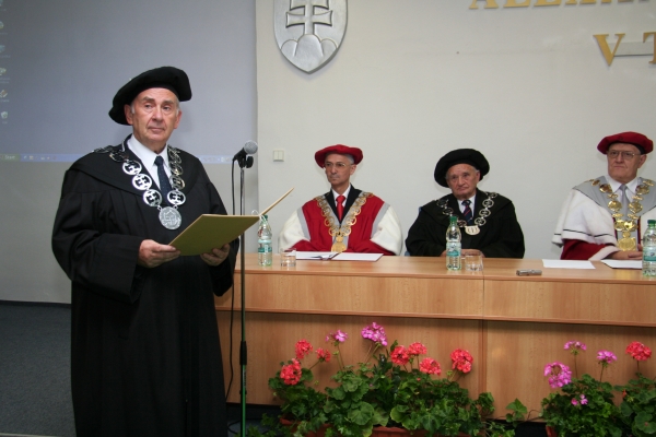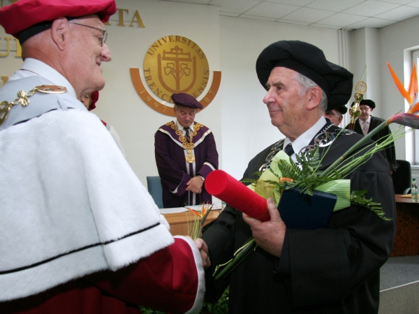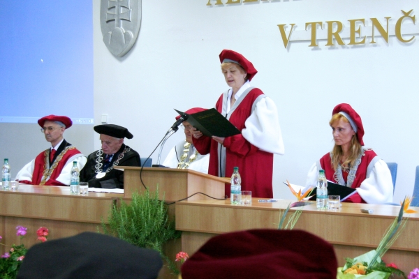 Po zložení slávnostného sľubu, že ocenený bude naďalej rozvíjať vedecké styky a spoluprácu s TnUAD rektor doc. Juraj Wagner odovzdal prof. Štefanovi Lubymu diplom a dekoroval ho slávnostnými insígniami.