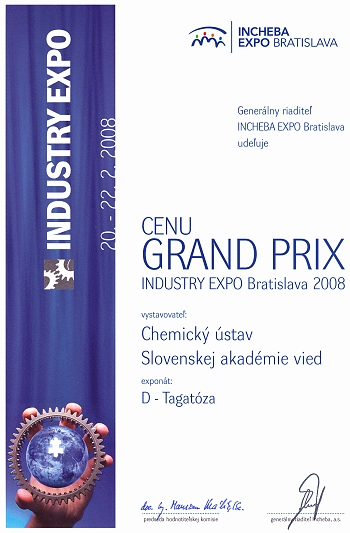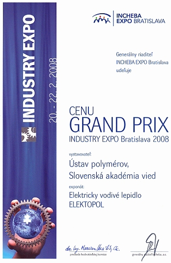 Ceny pod názvom GRAND PRIX INDUSTRY EXPO 2008 z rúk námestníka generálneho riaditeľa a.s. Incheba Jozefa Kaliského na záver veľtrhu v mene kolektívu prevzal Igor Novák z Ústavu polymérov SAV za elektricky vodivé lepidlo Elektopol a Ján Kozák z Chemického ústavu SAV za objemové náhradné sladidlo D- Tagatóza.