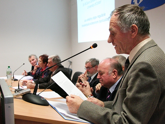 Za ocenených sa poďakoval "Vedec roka 2008" prof. Fedor Šimko, ktorý sa vo svojom príhovore zamyslel nad vlastnosťami, ktoré vedecký pracovník potrebuje, aby dosiahol úspech... "Vedecký pracovník je osamelý bežec. Nikdy si nie je istý, či je jeho koncepcia správna, či postup dosahovania pravdy je optimálny. Ale vždy pookreje, ak sa nájde niekto, kto jeho výsledky považuje za zaujímavé. A keď náhodou dostane za svoju prácu od oveľa múdrejších, skúsenejších kolegov ocenenie, a s tým spojené akési verejné uznanie, pripadá mu to ako blikanie svetla na konci tmavého tunela," zdôraznil. a pokračoval. "Vysoko si vážime skutočnosť, že v priamej konkurencii vynikajúcich vedeckých prác a výsledkov sme dostali najviac dôvery práve my - ocenení. Vyznamenanie, ktoré dostávame, je pre každého z nás zadosťučinením za stovky prebdených nocí a pracovne strávených víkendov, dokladom toho, že spoločnosť má o našu prácu záujem a váži si ju. A navyše, možno nám dodá odvahu klásť si vo vede tie najvyššie ciele." (Celé vystúpenie prof. Fedora Šimka si môžete otvoriť v prílohách pod fotografiami, alebo po kliknutí na hnedočervený nápis.)