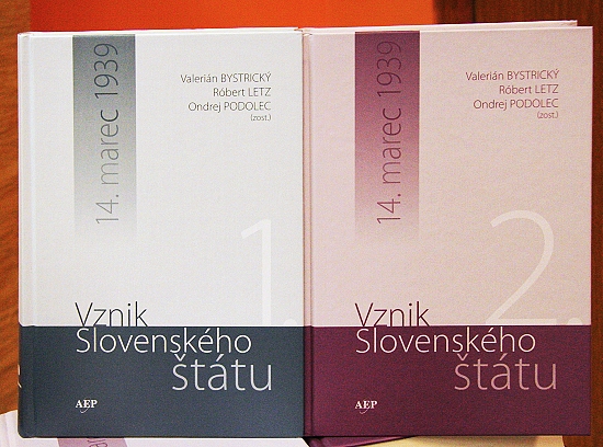 Ako na úvod pripomenul moderátor podujatia Ján Pálffy z Ústavu pamäti národa, na publikácii, ktorú vydalo vydavateľstvo AEPress, sa podieľali tri inštitúcie – Historický ústav SAV - Valerián Bystrický, Pedagogická fakulta UK v Bratislave - Róbert Lenz a Ústav pamäti národa - Ondrej Podolec. Obidva zväzky publikácie pod názvom Vznik Slovenského štátu prinášajú spomienky aktérov historických udalostí spätých so 14. marcom 1939 a súčasne výpovede viacerých politikov pred Národným súdom. Ide o pestrú zmes rozdielnej interpretácie udalostí spojených so vznikom Slovenského štátu. Mimoriadnym prínosom oboch zväzkov je, že v súhrnnej podobe poskytujú čitateľovi možnosť detailne sa zoznámiť s priebehom marcových udalostí.