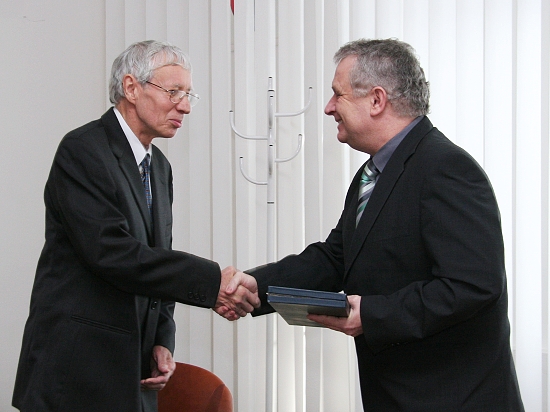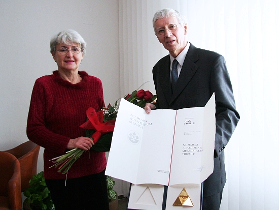 V pondelok 1. februára predseda Slovenskej akadémie vied prof. Jaromír Pastorek odovzdal Zlatú medailu SAV prof. Ivanovi Frollovi z Ústavu merania SAV pri príležitosti jeho významného životného jubilea.
