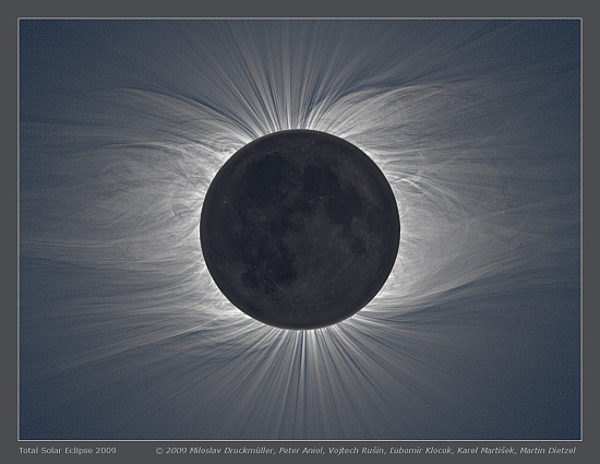 - Štúdium bielej koróny (morfológia a dynamika) do 20 polomerov Slnka, pričom do dvoch polomerov s vysokým rozlíšením - okolo 0,5 oblúkovej sekundy, čo na Slnku je 350 kilometrov. Bielu korónu (štvrtý obrázok v prílohách) budú pozorovať pomocou 6 objektívov s ohniskovou dĺžkou od 1640 do 200 mm. V okulárových koncoch všetkých objektívov budú digitálne fotografické aparáty CANON EOS 5D a CANON EOS 5D Mark II. Všetky pozorovania sa budú robiť pomocou troch notebookov s programom Ing. Jindřicha Nového, PhD. (Red Hat Linux) a spracovávať metódou a programom prof. M. Druckmüllera.
