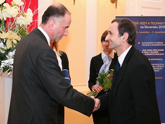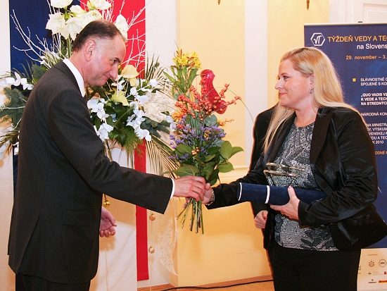 V historickej budove NR SR na Župnom námestí v Bratislave Týždeň vedy a techniky na Slovensku vyvrcholil udeľovaním Cien ministra školstva, vedy, výskumu a športu SR za vedu a techniku za rok 2010. Na slávnostnom galavečere sa stretli vedci, výskumníci, ale aj organizátori vedy z výskumných ústavov, univerzitných katedier, aj príbuzní a priatelia ocenených... Slovenskú akadémiu vied zastupoval predseda SAV prof. Jaromír Pastorek a viacerí členovia Predsedníctva SAV, riaditelia ústavov a ďalšie osobnosti.