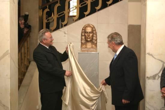 Bustu významného slovenského polyhistora, encyklopedistu, filozofa, pedagóga, priekopníka slovenského osvietenstva a jedného z najvýznamnejších európskych vedcov 18. storočia Mateja Bela (*22. 3. 1684 v Očovej – †29. 8. 1749 v Bratislave) za účasti viacerých predstaviteľov slovenského vedeckého a vysokoškolského života odhalili vedúci kancelárie prezidenta SR akademik Milan Čič a predseda SAV prof. Štefan Luby. Autorom busty je akademický sochár Alexander Ilečko.