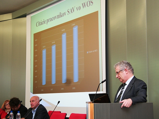 V ďalšej časti svojho vystúpenia za potešiteľnú skutočnosť predseda SAV označil postupný rast počtu vedeckých pracovníkov v SAV, hoci celkový počet pracovníkov dokonca mierne klesá, teda podiel vedeckých pracovníkov sa zvyšuje. V minulom roku pracovníci SAV prihlásili na patentové konanie 10 vynálezov, na Slovensku im boli udelené 4 patenty a zapísané do registra boli 2 úžitkové vzory. Silnou stránkou SAV je aj medzinárodná vedecká spolupráca, vedecké tímy SAV riešili ešte 26 programov 6. RP EÚ a ďalších 53 programov 7. RP EÚ, ako aj viacero projektov iných významných medzinárodných programov.