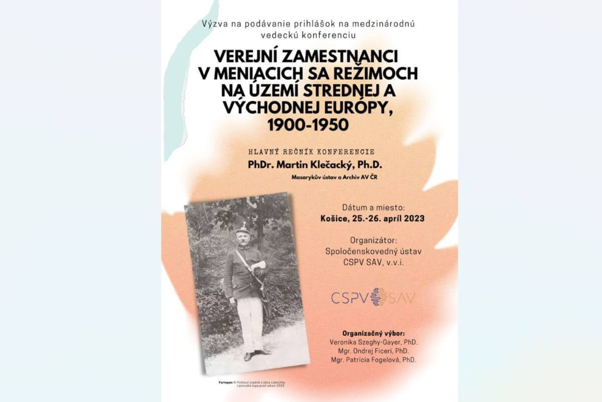 The conference takes place on April 25-26, 2023 in Košice. The key-note speaker of the conference will be PhDr. Martin Klečacký, Ph.D., from the Masaryk Institute and the Academy of Sciences of the Czech Republic.
