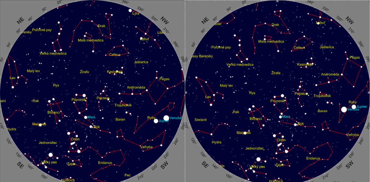 "Brighter Venus will be less than 1 degree north of Jupiter. They will seemingly almost touch,"Ján Svoreň from the Astronomical Institute SAS describes the interesting event, and adds that when using a small telescope, observers will see 4 bright points in one line - its largest moons - in the vicinity of Jupiter.