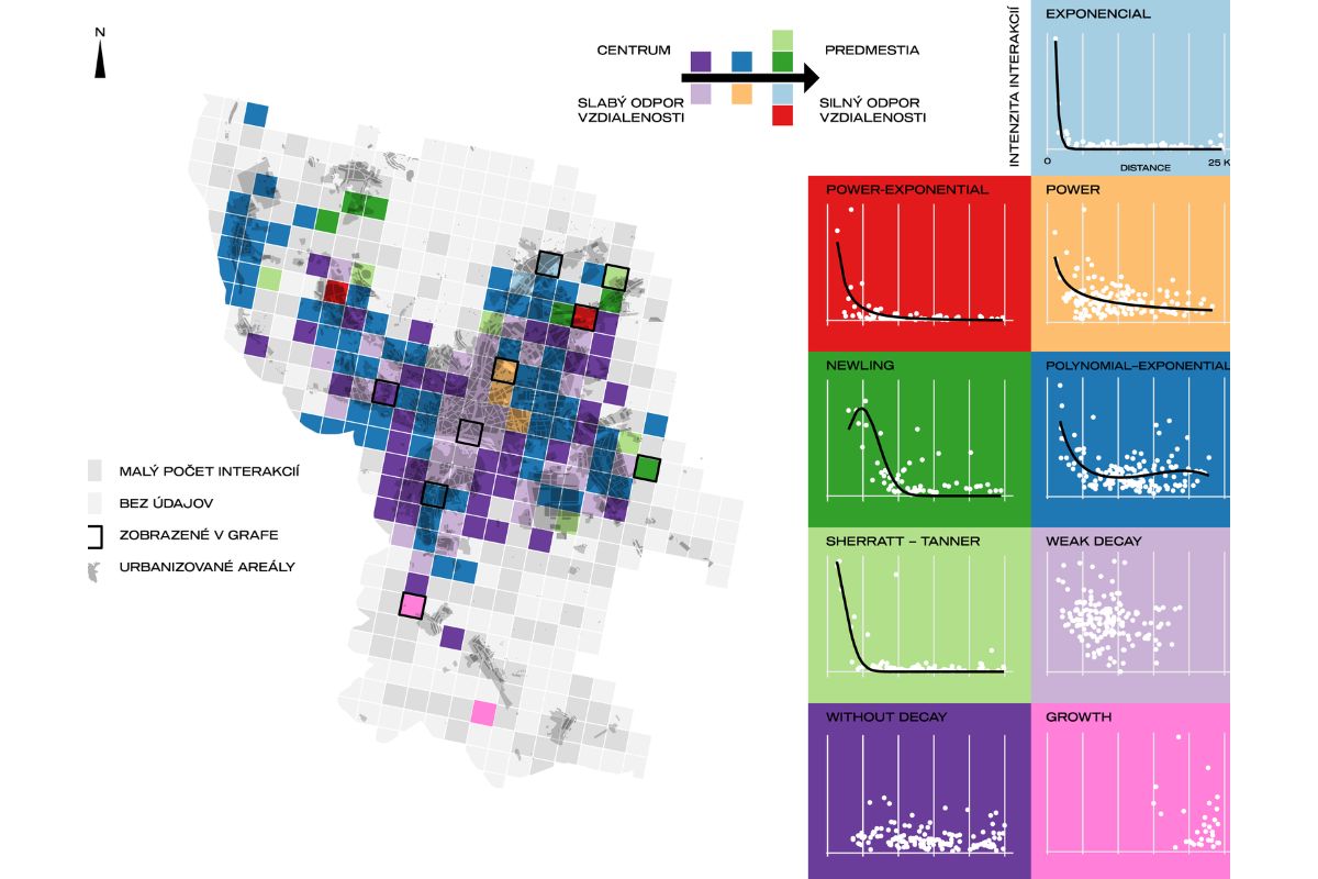 The decrease of interactions with increasing distance phenomenon (the so-called distance decay) has long attracted the attention of researchers in various fields, including traffic studies, spatial planning and urban geography. We still have no satisfactory answers to basic questions such as how far do people commute within the city to reach different destinations? Are there potentially significant differences between different types of targets? The study by geographers of the Slovak Academy of Sciences attempts to at least partially answer the above questions through the analysis of the spatial differentiation of the "resistance of distance" to movement in urban space.