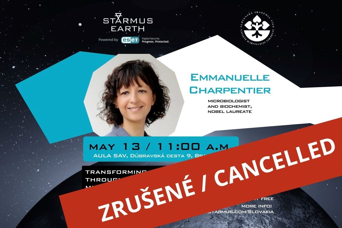 We are forced to cancel today's lecture by Emmanuelle Charpentier within the STARMUS science festival due to unforeseen logistical reasons on the part of the lecturer.