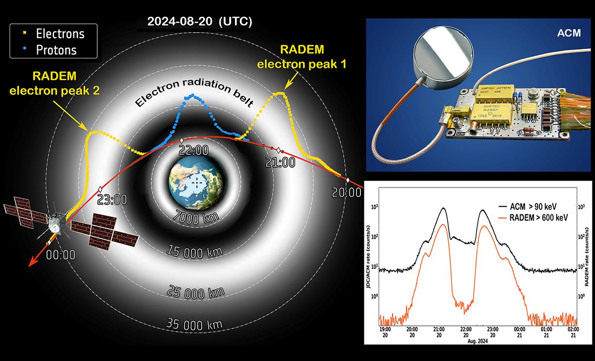 As part of the close Earth flyby, the spacecraft twice crossed the outer Van Allen radiation belt, where Earth’s magnetic field traps high-energy electrons. Recent data analysis and calibration with the onboard RADEM radiation monitor confirm that the ACM detector performs as expected, reliably registering energetic electrons and their secondary products that penetrate deeply into the PEP instrument.
