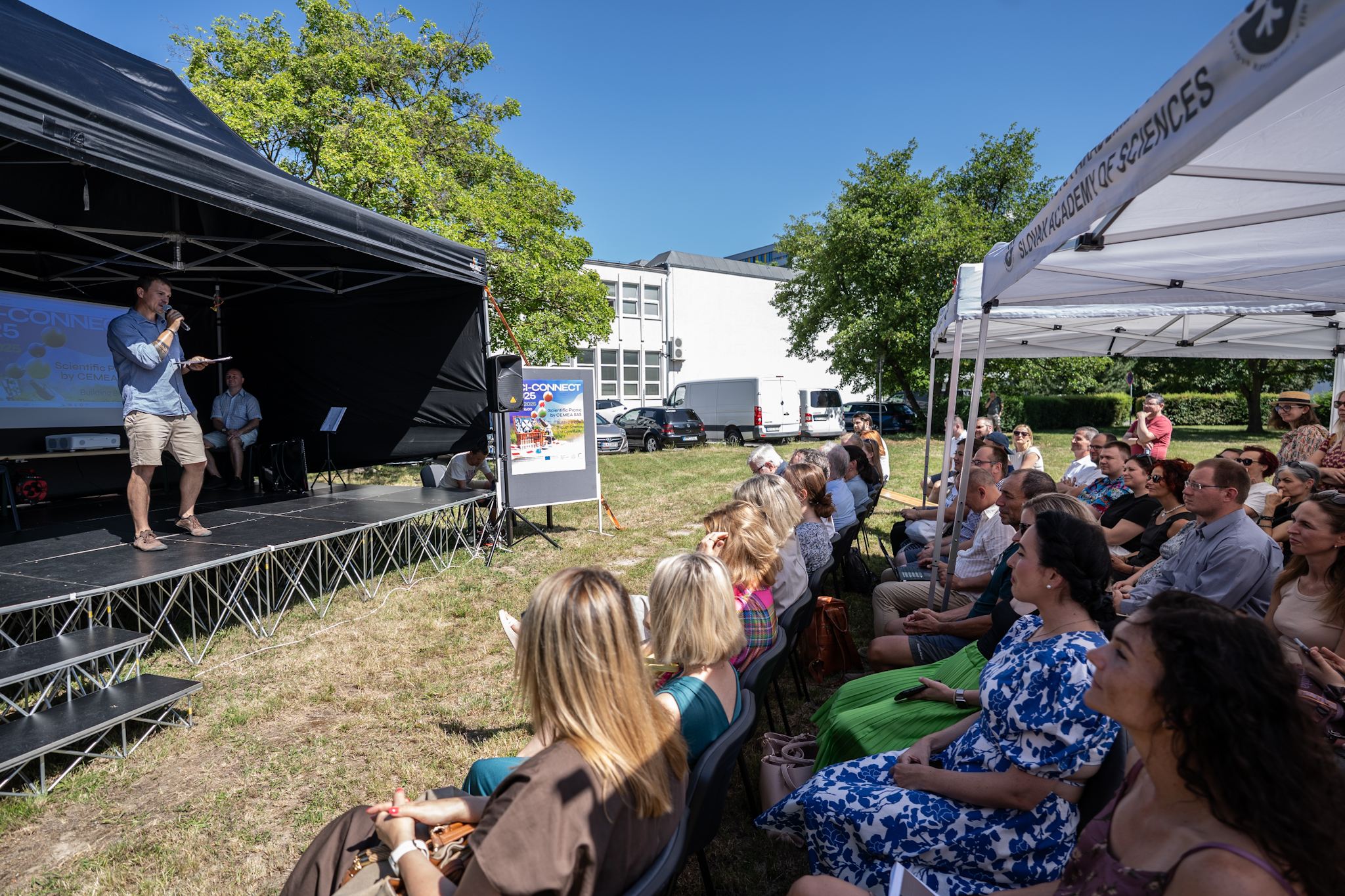 Science should unite. It should inspire, spark dialogue, and remain open and accessible to all who are curious and passionate. This vision came to life at SCI-CONNECT 2025, an informal scientific picnic held under the open sky and organized by CEMEA SAS in collaboration with the DEMEDES project team. The event took place on Wednesday, June 25, 2025 and brought together a diverse group of participants: researchers from the DEMEDES project, key scientific teams from CEMEA SAS, international guests, partners from various institutes of Slovak Academy of Sciences, and many other distinguished contributors. It was a true celebration of science in its most human form - collaborative, joyful, and deeply engaging.
