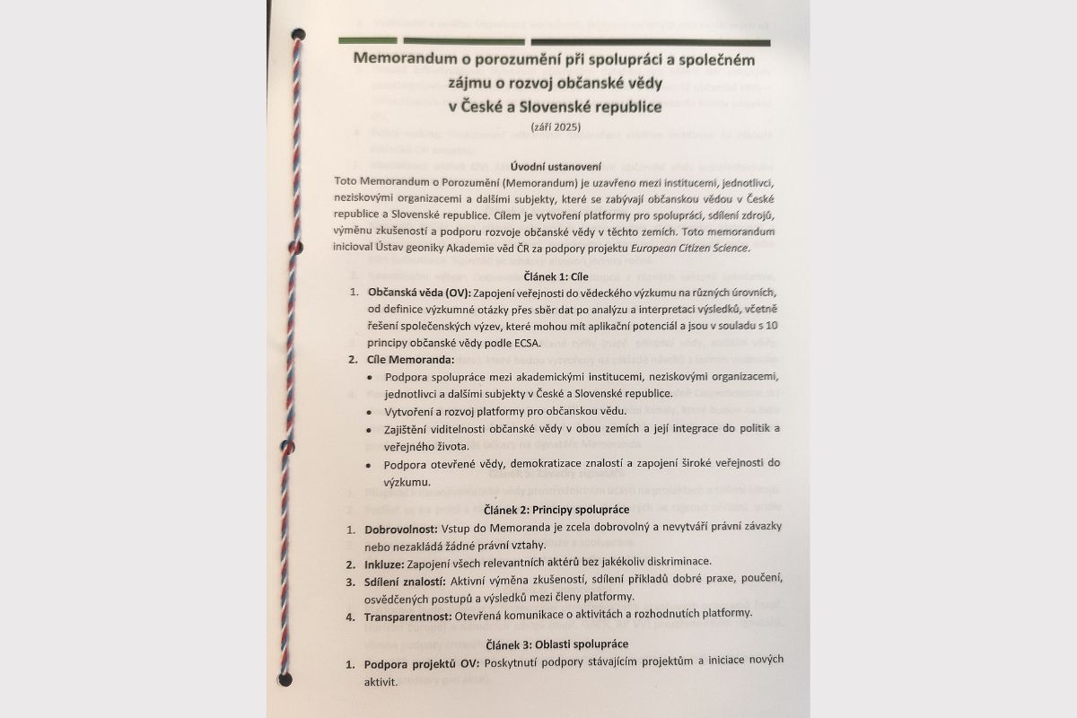 The full text of the memorandum is available on the website citizenscience.cz, where institutions and individuals may join the initiative by signing the document online.