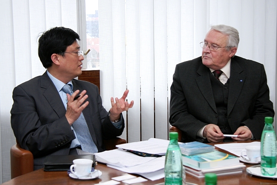 At the beginning Ján Barančík informed the Taiwanese guest about the present cooperation between SAS and NSC. He mentioned that in the period 2004-2007 4 researchers from SAS institutes visited Taiwan in frame of the above mentioned agreement, and in the same period 2 Taiwanese scientists visited the SAS. In addition to this he gave a short presentation about the present bilateral and multilateral cooperation of the SAS with its partners abroad.