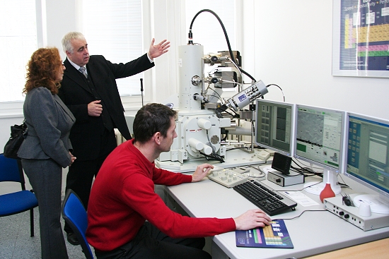 Ide o unikátny rastrovací elektrónový analytický mikroskop typu JEOL JSM 7600F vybavený EDS, WDS a EBSD analyzátormi. Prístroj predstavil Karol Iždinský z Ústavu materiálov a mechaniky strojov SAV. Konštatoval, že vo svojej kategórii je to špičkový prístroj s možnosťami využitia v oblasti skúmania tuhej fázy a širokého spektra materiálových vied. Inštalovaný mikroskop dosahuje rozlíšenie 1 nm pri 15 kV a 1,5 nm pri 1 kV, čo zodpovedá zväčšeniu až miliónkrát a disponuje maximálnym prúdom zväzku 200 nA pri 15 kV. Zobrazovacie možnosti mikroskopu sú budované na dvoch detektoroch sekundárnych a dvoch detektoroch spätne odrazených elektrónov. Mikroskop dokáže získavať obrazy so zvýraznením morfológie povrchu alebo chemického zloženia. Získané signály je možné miešať s cieľom ďalej zvýrazniť charakter hľadanej informácie. Analytické možnosti mikroskopu zahŕňajú energiovo (EDS) a vlnovo disperzívnu (WDS) spektroskopiu spolu s difrakciou spätne odrazených elektrónov (EBSD).