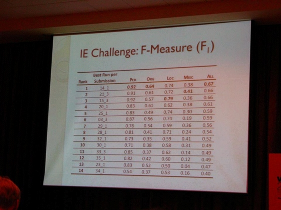 Cieľom súťaže bolo rozpoznať entity ako sú mená osôb, názvy organizácií, názvy lokalít a rôzne iné názvy v textoch krátkych správ (mikroblogy, tweets).