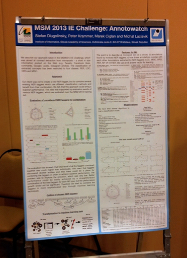 Tím z Ústavu informatiky SAV sa zúčastnil medzinárodnej súťaže #MSM2013 Concept Extraction Challenge[1], ktorá sa konala v rámci najprestížnejšej vedeckej konferencie zameranej na výskum Webu, World Wide Web - WWW 2013[2] v brazílskom Rio de Janiero.