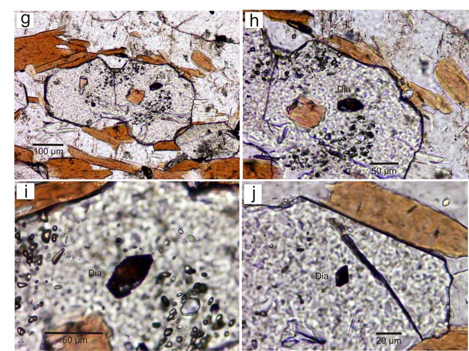 Nasledujúce obrázky ukazujú „ultravysokotlakový“ terén v Nórsku, kde sa diamanty našli a vlastné mikrofotografie diamantov uzatváraných v granátoch.
