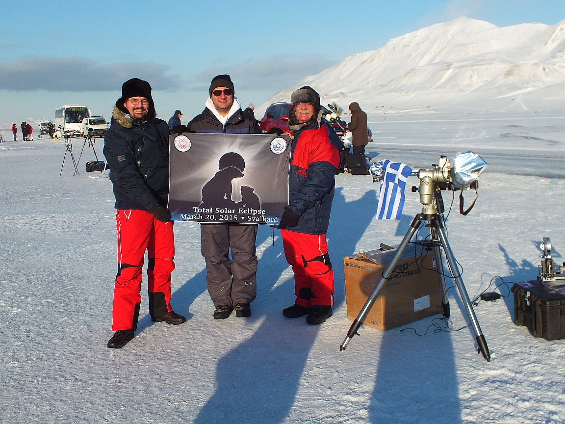 Pozorovacie stanovište expedície (78º 13’ N a 15º 33’ E), asi 3 km od správneho centra Svalbardu Longyearbyen, bolo na otvorenej, zasneženej rovine zálivu Arctic Bay, ktorá sa volá Adventdalen. Počas úplného zatmenia Slnka v čase od 11:10:43 do 11:13:10 SEČ bolo Slnko vysoko nad okolitými horami asi 5 stupňov. Počasie bolo veľmi dobré, ale mimoriadne mrazivé. Po príchode na pozorovacie stanovište o 08:30 bola teplota mínus 18º C a v čase totality až mínus 24º C! Mrzli aparáty, počítače – samozrejme aj my. Vedľa našich kvalitných ubytovacích zariadení v Longyearbyen sme nemohli pozorovať, keďže celé stredisko sa nachádzalo v tieni okolitých hôr, kde sa ťažilo alebo ťaží kvalitné čierne uhlie. I napriek hrozivej zime, expedícia získala viac ako 500 vysokokvalitných záberov s rôznými expozičnými časmi, ktoré budú podrobené detailnej analýze a ktoré v súčinnosti s pozorovaniami fotosféry a chromosféry na iných mietach zemského povrchu, ako aj pozorovaním koróny prístrojmi na družiciach či kozmických sondách nepochybne prispejú k lepšiemu pochopeniu nielen fyziky Slnka, ale aj vzťahov Slnko-Zem.