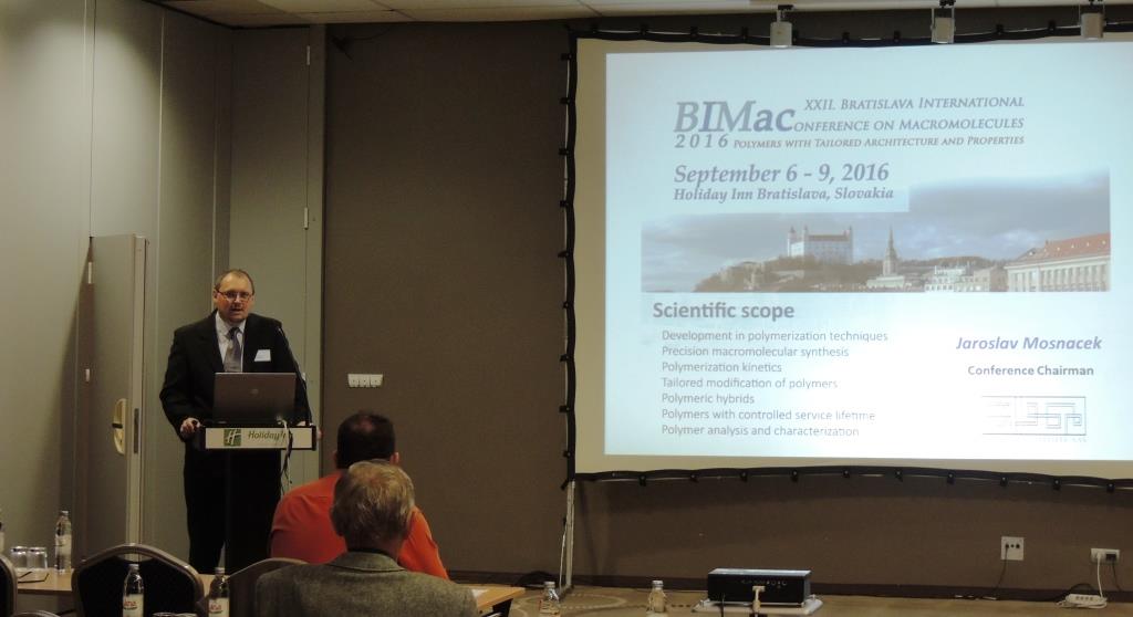Tesne po letnom dovolenkovom období, v dňoch od 6. do 9. septembra 2016 sa v hoteli Holiday Inn v Bratislave uskutočnila konferencia BIMac 2016, ktorá je pokračovaním dlhoročnej tradície Bratislavskej medzinárodnej konferencie o makromolekulách organizovanej Ústavom polymérov SAV. Tento rok šlo o jej 22. ročník s podnázvom Polymers with Tailored Architecture and Properties.