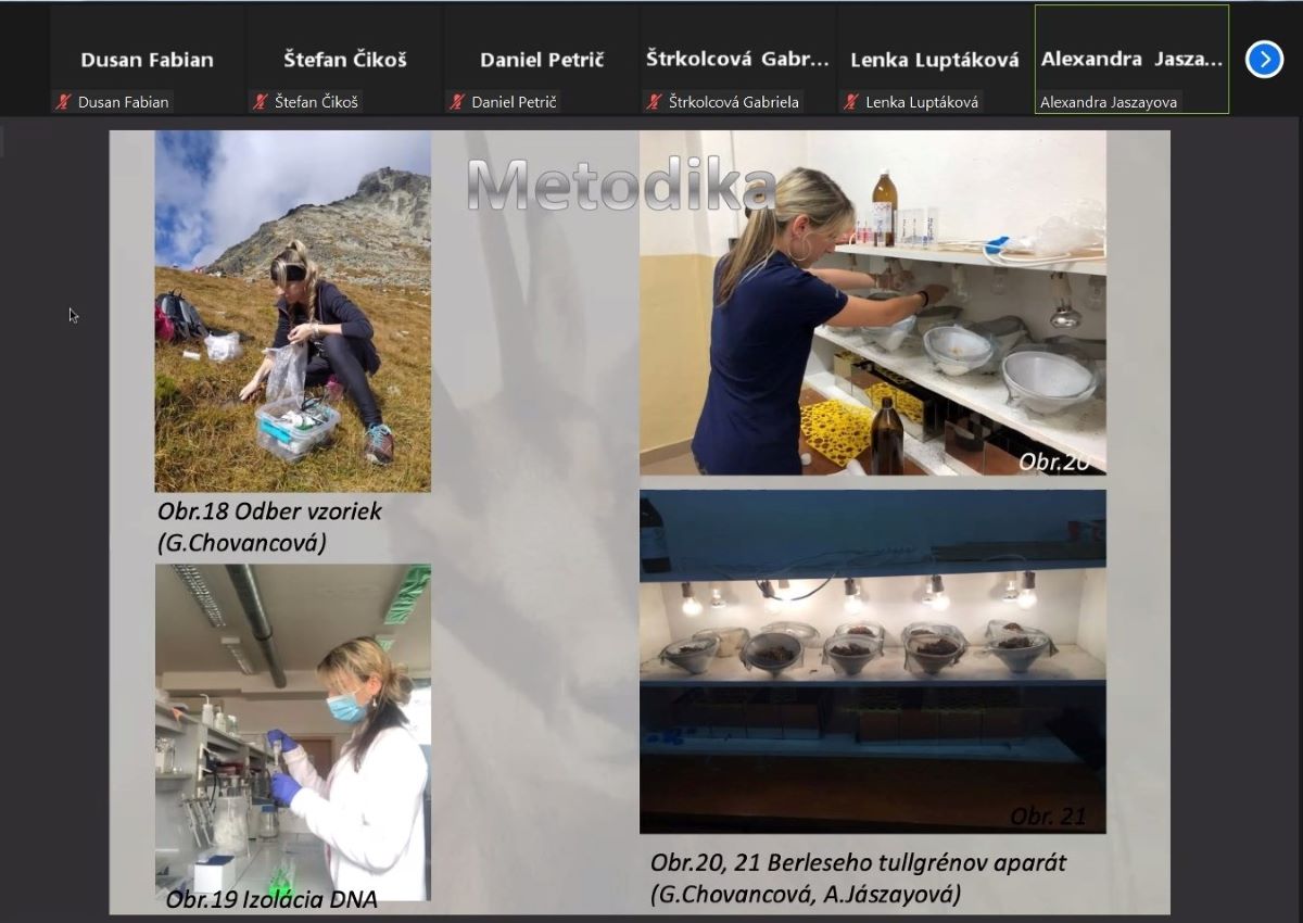 - Mgr. Alexandra Jászajová, Parazitologický ústav SAV, UVLF: Ekologické aspekty cirkulácie pôvodcov parazitárnych ochorení v špecifických podmienkach Tatranského národného parku