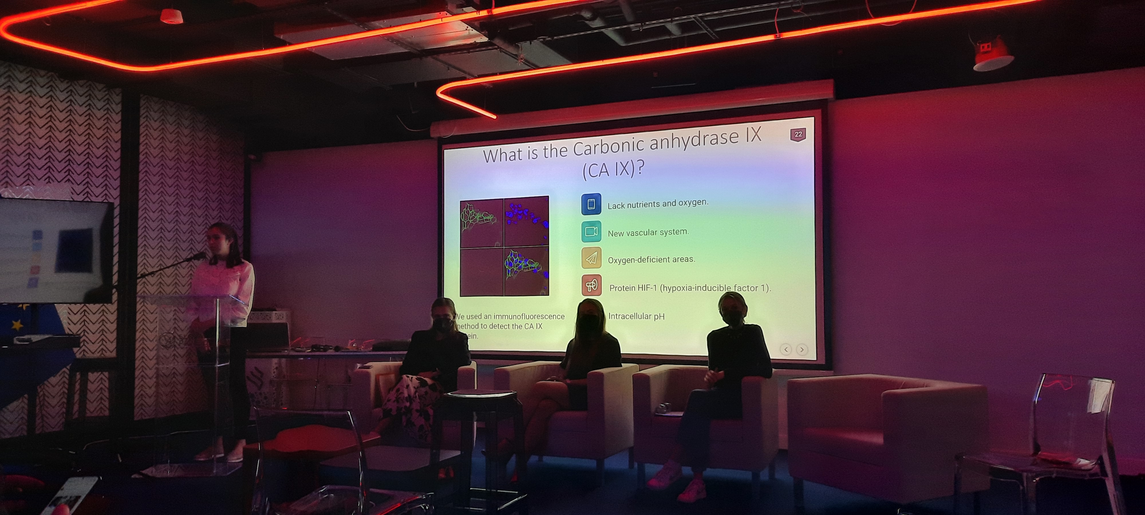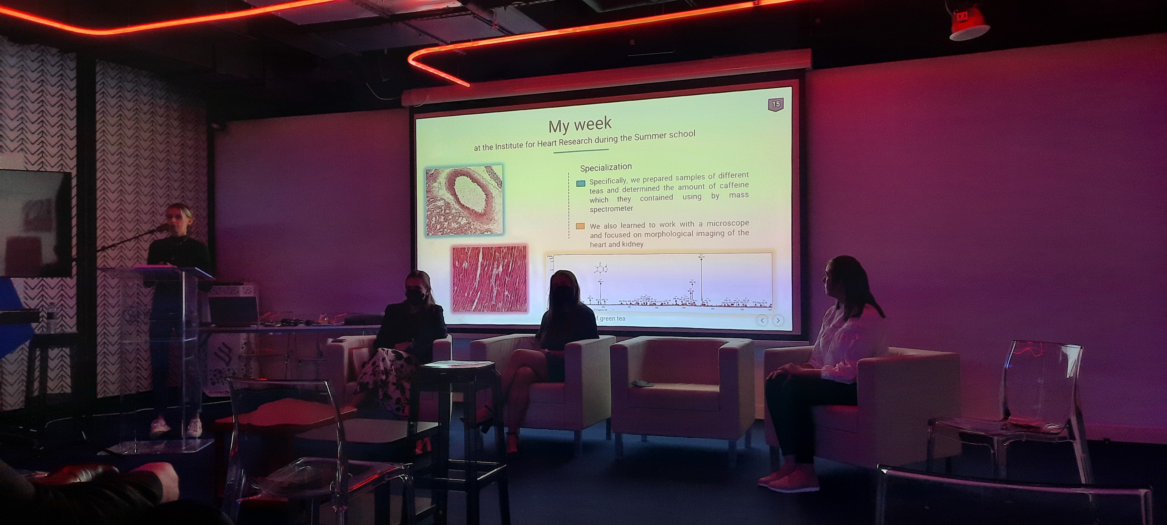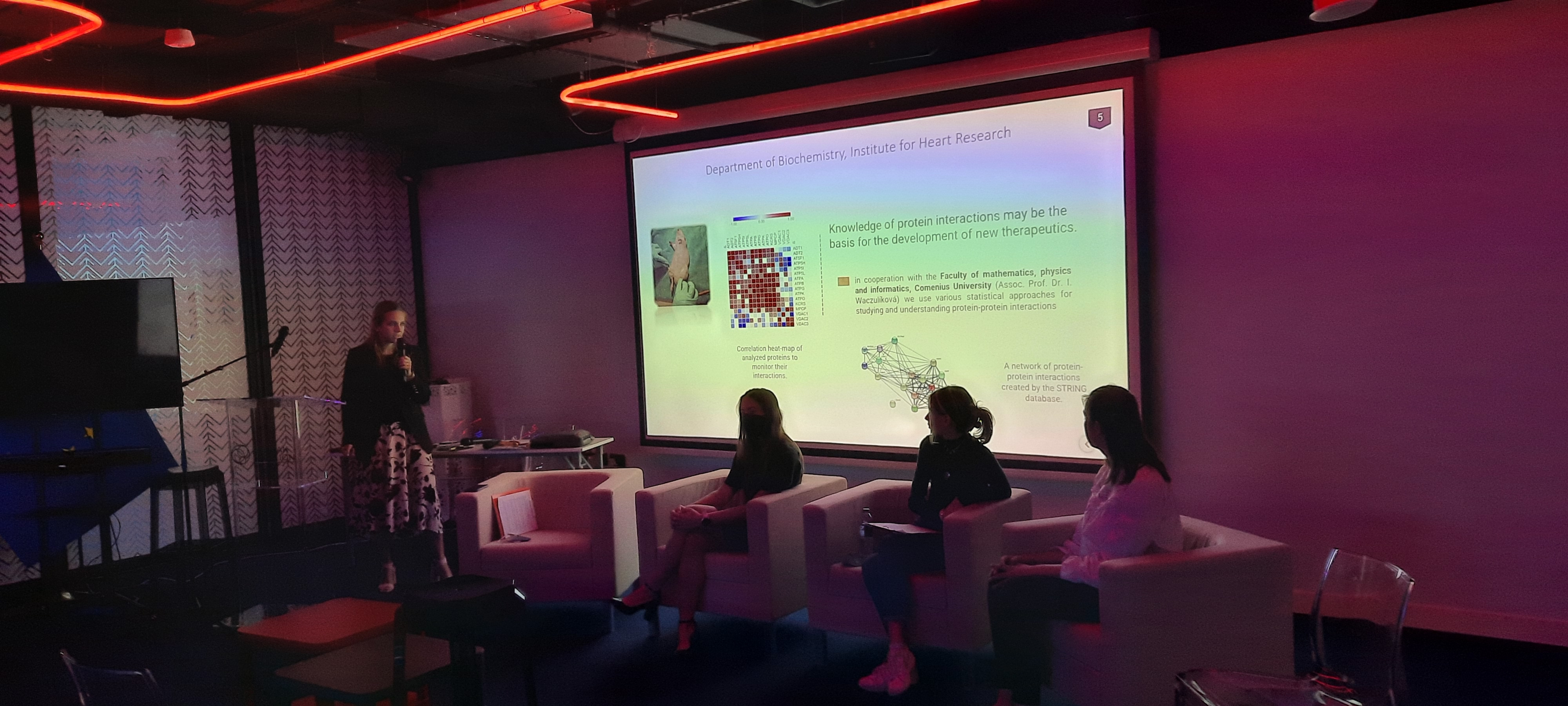 Vďaka neustálej chuti a obrovskému nadšeniu pre poznanie a pre vedu dostali „mladé vedkyne“ Andrea Kubáňová z Gymnázia Kukučínova Poprad a Izabela Mária Hašková z Gymnázia na Grösslingovej v Bratislave príležitosť prezentovať svoje práce počas tematického týždňa Knowledge & Learning na EXPO 2020. Témy prác boli zamerané na výskum kardioprotekcie na úrovni energetiky mitochondrií, ktorý bol realizovaný na Ústave pre výskum srdca CEM SAV a na detekciu karbonickej anhydrázy IX na Virologickom ústave BMC SAV. Súčasťou prezentácii bola aj prednáška samotného výskumu proteomických analýz srdcových mitochondrií na úrovni projekcie myokardu talentovanej doktorandky Natálii Andelovej z Ústavu pre výskum srdca CEM SAV. Veronika Okruhlicová, študentka z Fakulty matematiky, fyziky a informatiky UK prejavila záujem a ochotu participovať pri skvalitnení výchovno - vzdelávacieho procesu nahliadnutím k výskumu z oblasti environmentálnej fyziky a obnoviteľných zdrojov energie.