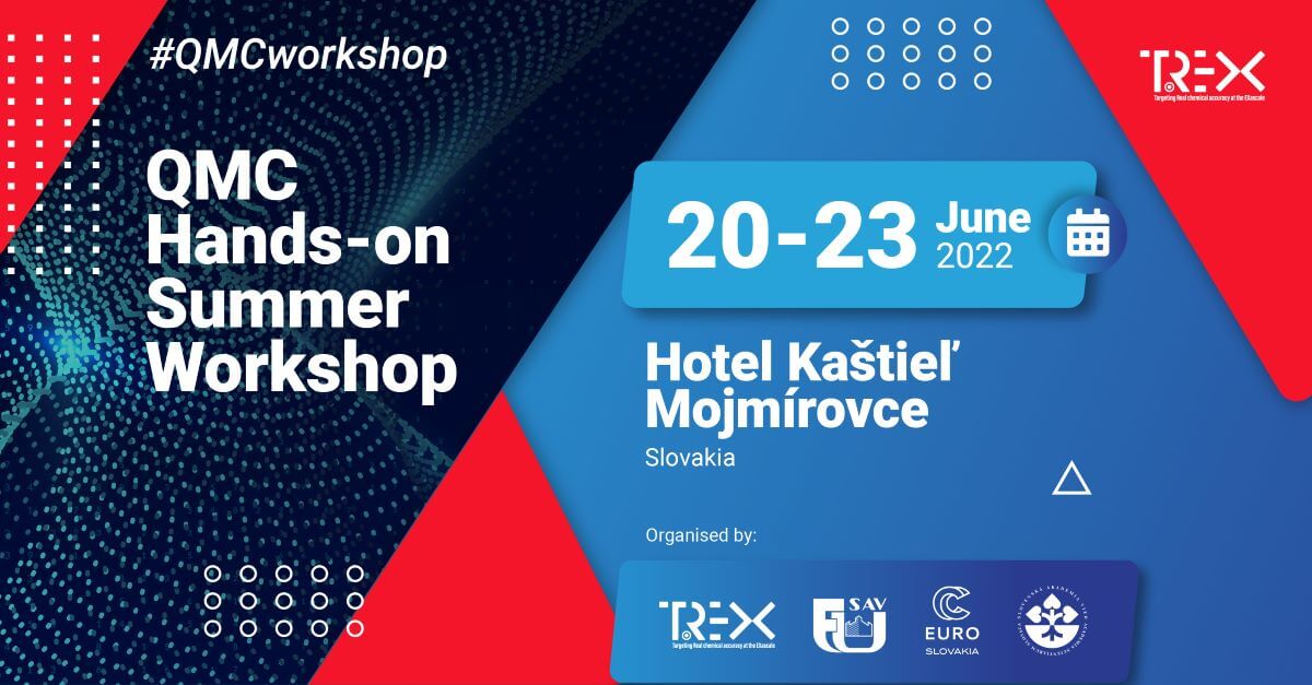 V dňoch 20. a 23. júna 2022 sa uskutoční workshop zameraný na metódy kvantového Monte Carla (Quantum Monte Carlo, QMC), ktorý organizuje európske centrum excelentnosti v exascale počítaní TREX v spolupráci s Národným kompetenčným centrom pre HPC (NCC pre HPC), Slovenskou akadémiou vied (SAV) a Fyzikálnym ústavom SAV, v. v. i.