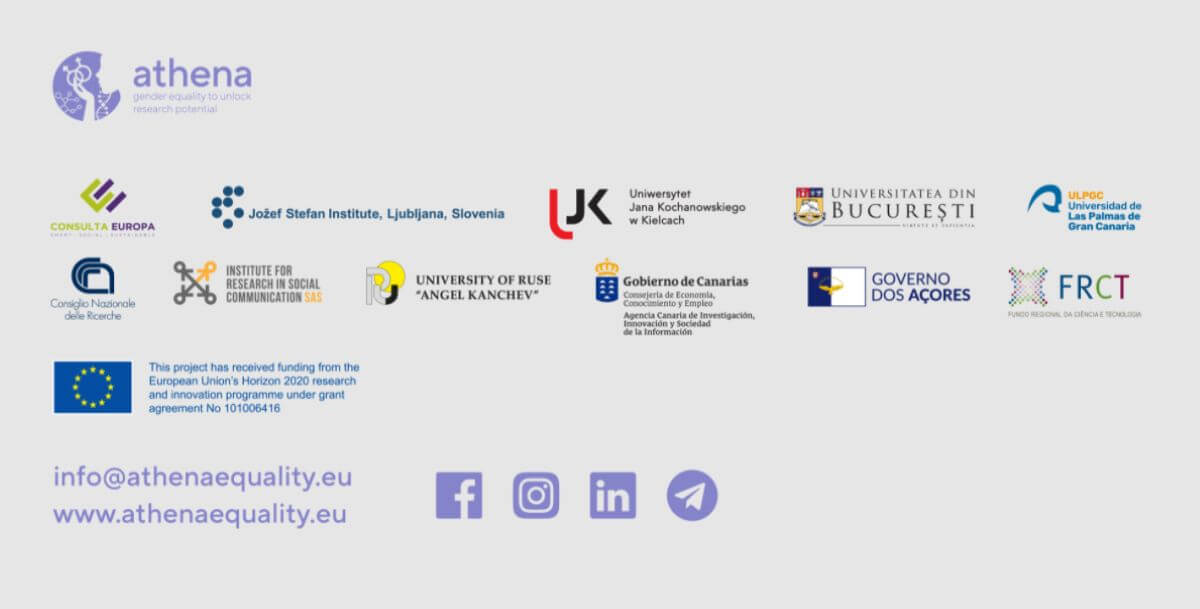 Ústav výskumu sociálnej komunikácie SAV, v. v. i., sa v roku 2021 zapojil do H2020 projektu ATHENA: Implementing gender equality plans to unlock research potential of RPOs and RFOs in Europe, ktorého úlohou je príprava a implementácia Plánu rodovej rovnosti. Na tento projekt boli poskytnuté finančné prostriedky z programu Európskej únie pre výskum a inováciu Horizont 2020 na základe dohody o grante číslo 101006416.