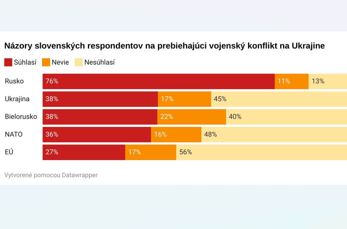 Najmenej sa Slováci stotožnili s výrokom, že za vojnu na Ukrajine je zodpovedná Európska únia (27 %).