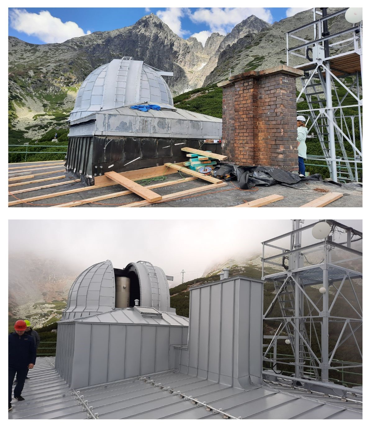 Dnešným dňom sa začal proces odovzdávania a prebratia stavby po ukončení opráv na budove observatória Astronomického ústavu SAV, v. v. i., (AsÚ SAV, v. v. i.) na Skalnatom plese. Od júna 2022 stavbári rekonštruovali hlavnú strechu observatória, strechu pozorovateľne a strechu prístavby pre dieselagregát. Opravený bol aj plechový obklad na fasáde, bleskozvody či zábradlie okolo strechy. Prvá fáza náročného procesu opráv sa začala už v roku 2021, keď došlo k výmene dreveného debnenia a plechovej krytiny na kupolách. Celková hodnota investície dosiahla sumu 501 442 eur a bola financovaná z kapitálových výdavkov štátneho rozpočtu pridelených Slovenskej akadémii vied. Opravy realizovala firma Strechy Zachar, s. r. o.