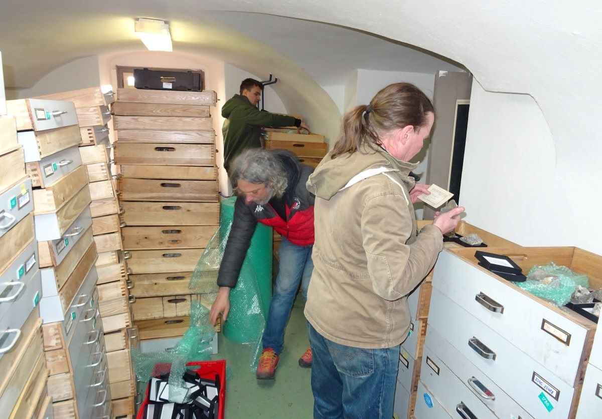 V prvej etape odborná skupina pod vedením Martina Števka štyri dni posudzovala stav zbierkových predmetov evakuovaných z budovy Berggerichtu do priestorov Kammerhofu. Pri posudzovaní bol prítomný aj kurátor geologických zbierok SBM Peter Jancsy.