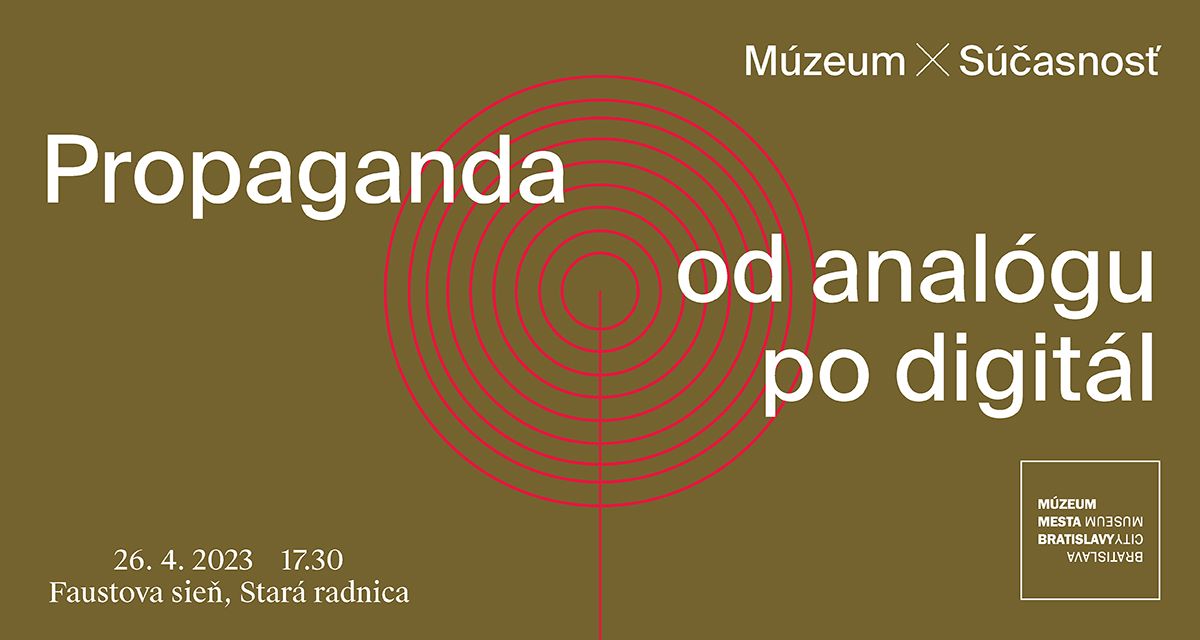 Múzeum mesta Bratislavy pozýva v rámci formátu Múzeum x Súčasnosť na diskusiu, na ktorej sa bude hovoriť o propagande. Podujatie sa uskutoční v stredu 26. apríla 2023 o 17.30 h vo Faustovej sieni Starej radnice v Bratislave.