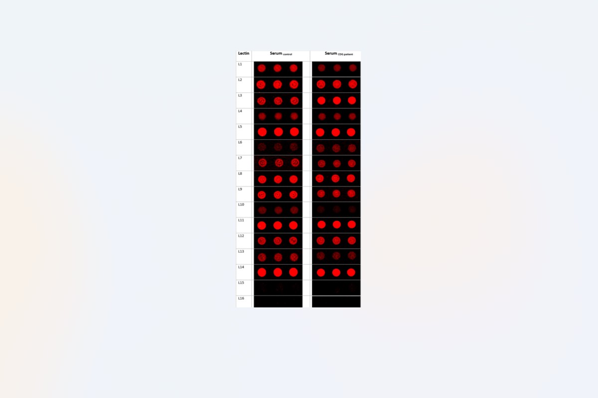 Nová technológia umožňujúca primárnu detekciu kongenitálnych porúch glykozylácie (CDG), pričom sa na analýzu celkových sérových glykoepitopov využíva špeciálne pripravené biočipy alebo mikroplatničky. Ide o vysoko citlivý, jednoduchý a rýchly spôsob primárnej detekcie CDG vo vzorkách ľudského séra alebo krvnej plazmy vyhodnotením pomeru signálov ich reakcie so špecifickou kombináciou lektínov.