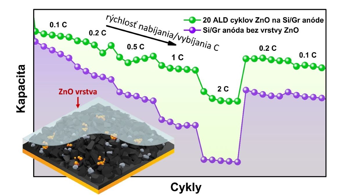 Výhodou novej inovatívnej technológie je možnosť zvýšenia kapacity Li-iónovej batérie s anódou kremíka/grafitu pokrytou vrstvou ZnO pri rýchlom nabíjaní a vybíjaní.