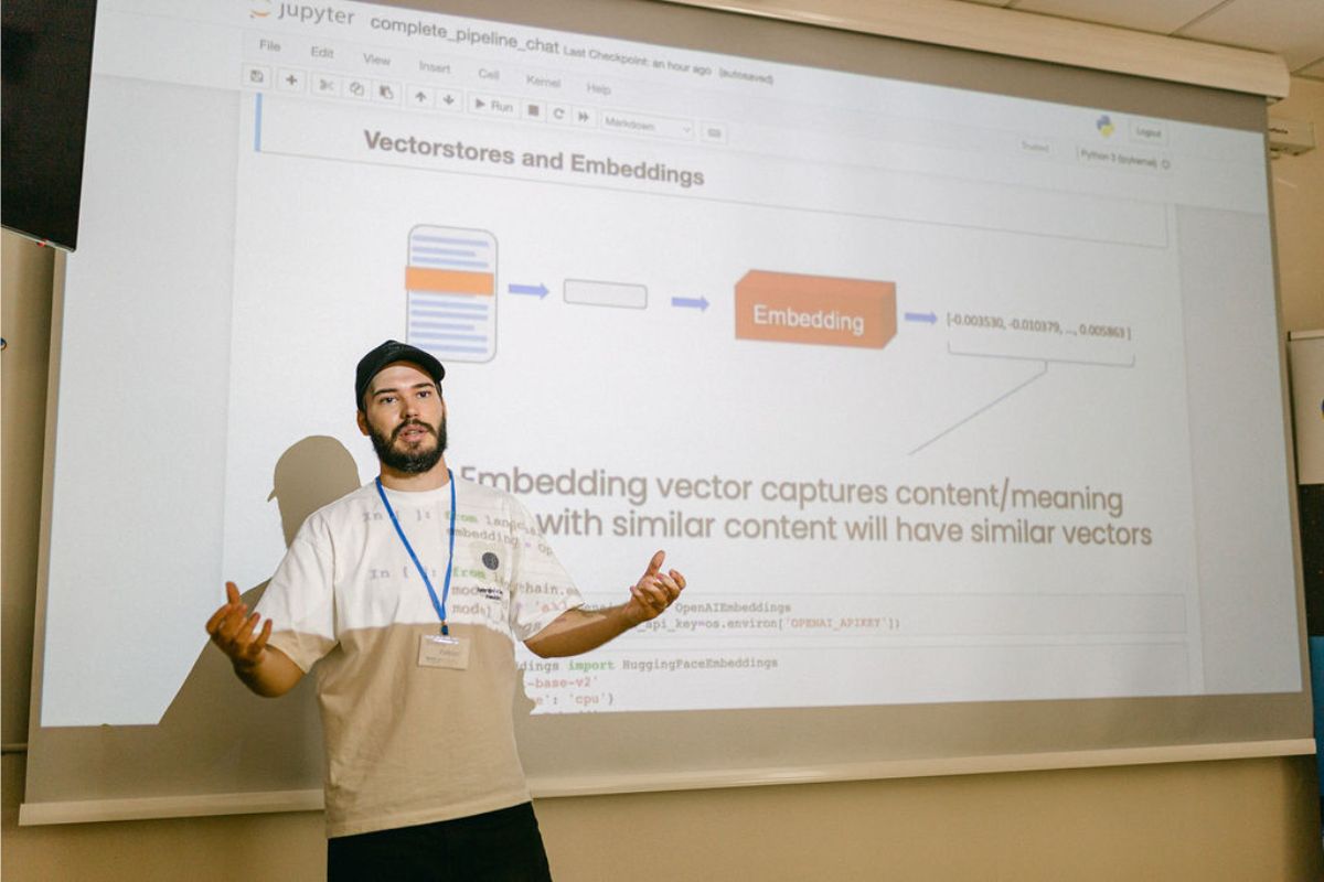 Prvé dva dni sa účastníci venovali mixu prednášok a praktických cvičení s dôrazom na praktické aplikácie GPT API. Naučili sa, na akom princípe fungujú veľké jazykové modely a ako pomocou nich extrahovať presné informácie z množstva vedeckých článkov. Osvojili si tiež, ako využiť jazykové modely v kombinácii s automatickým spracovaním obrazu. Ako príklad použili najnovšie snímky, z JWST (James Webb Space Telescope), ktorému sa venovala tiež samostatná prednáška. Počas tretieho dňa letnej školy pracovali študenti v tímoch na konkrétnych projektoch, kde si mohli precvičiť nadobudnuté vedomosti.