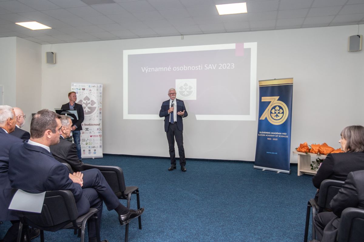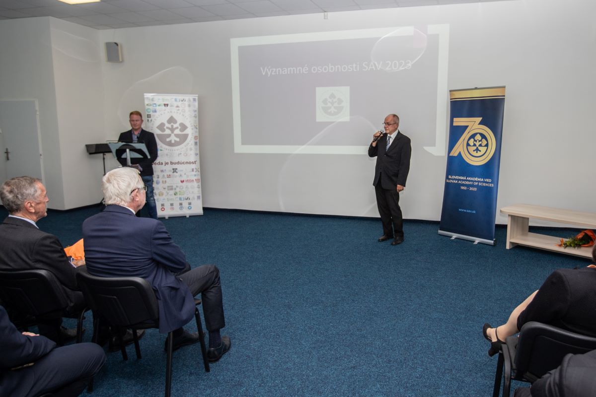 Vzdať hold a uctiť si dlhoročných, významných aj výnimočných pracovníkov Slovenskej akadémie vied bolo aj tento rok dôvodom slávnostného seminára Významné osobnosti 2023, ktorý sa konal v pondelok 25. septembra 2023 v prednáškovej sále Dionýza Blaškoviča (bývalá zasadačka Virologického ústavu BMC SAV). V slávnostnej priateľskej atmosfére si Pozdravný list Predsedníctva SAV prevzalo 15 dlhoročných pracovníkov SAV, ktorí sa v tomto roku dožívajú aj významného jubilea.