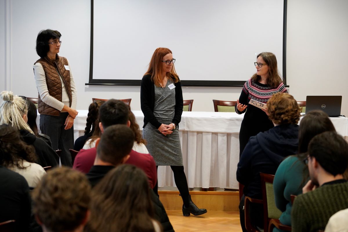 Trojica vedkýň – Vladimíra Čavojová z Ústavu experimentálnej psychológie Centra spoločenských a psychologických vied SAV, v. v. i., Zuzana Panczová z Ústavu etnológie a sociálnej antropológie (ÚESA) SAV, v. v. i., a Marína Zavacká z Historického ústavu (HÚ) SAV, v. v. i., – diskutovala o svojich skúsenostiach z interdisciplinárnej spolupráce pri príprave publikácie Fámy, konšpiračné teórie a dezinformácie očami spoločenských vied, ktorá vyšla v rámci programu Otvorená akadémia v roku 2021. Doktorandi a doktorandky sa tak dozvedeli, Čo majú spoločné... experimentálna psychológia, etnológia a história a ako sa navzájom môžu konceptuálne aj metodologicky obohatiť.