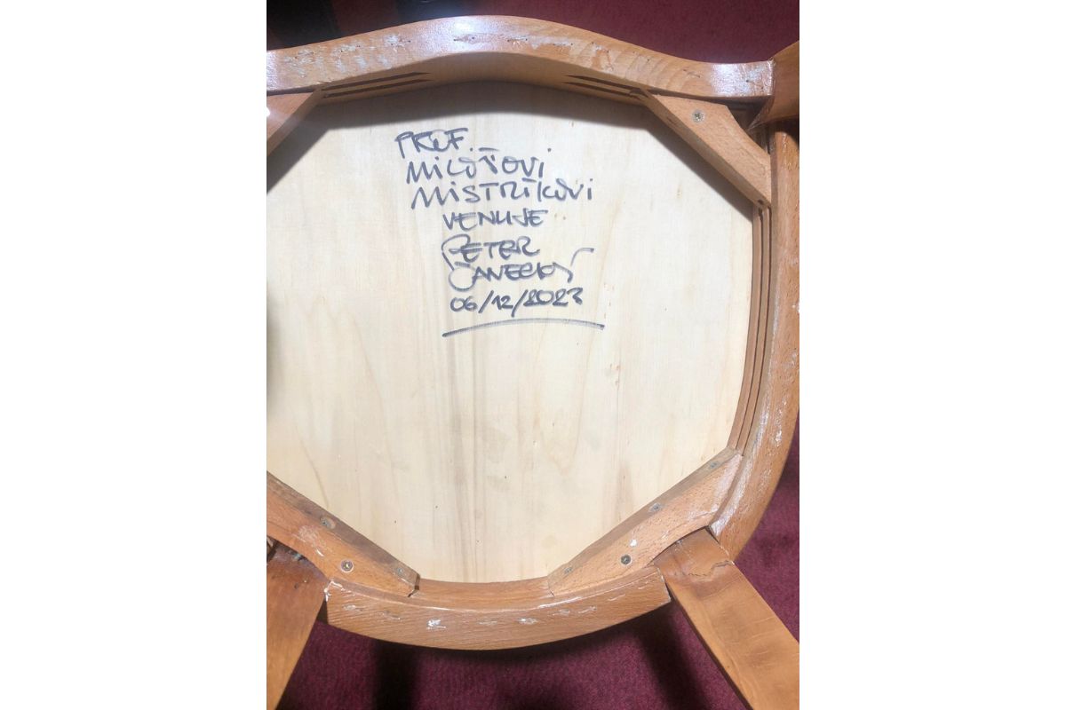 Zaujímavý je samotný návrh artefaktu tohtoročnej ceny, ktorého autorom je slovenský scénický a kostýmový výtvarník, riaditeľ Umeleckých a dekoračných dielní SND Peter Čanecký. Ide o stoličku reálnej veľkosti, ktorá symbolicky odkazuje na postavu režiséra nemeckého expresionizmu Maxa Reinhardta, o ktorom Miloš Mistrík napísal a vydal knihu. Cenu mu odovzdala členka SC AICT, teatrologička a bývala riaditeľka Ústavu divadelnej a filmovej vedy CVU SA Elena Knopová.