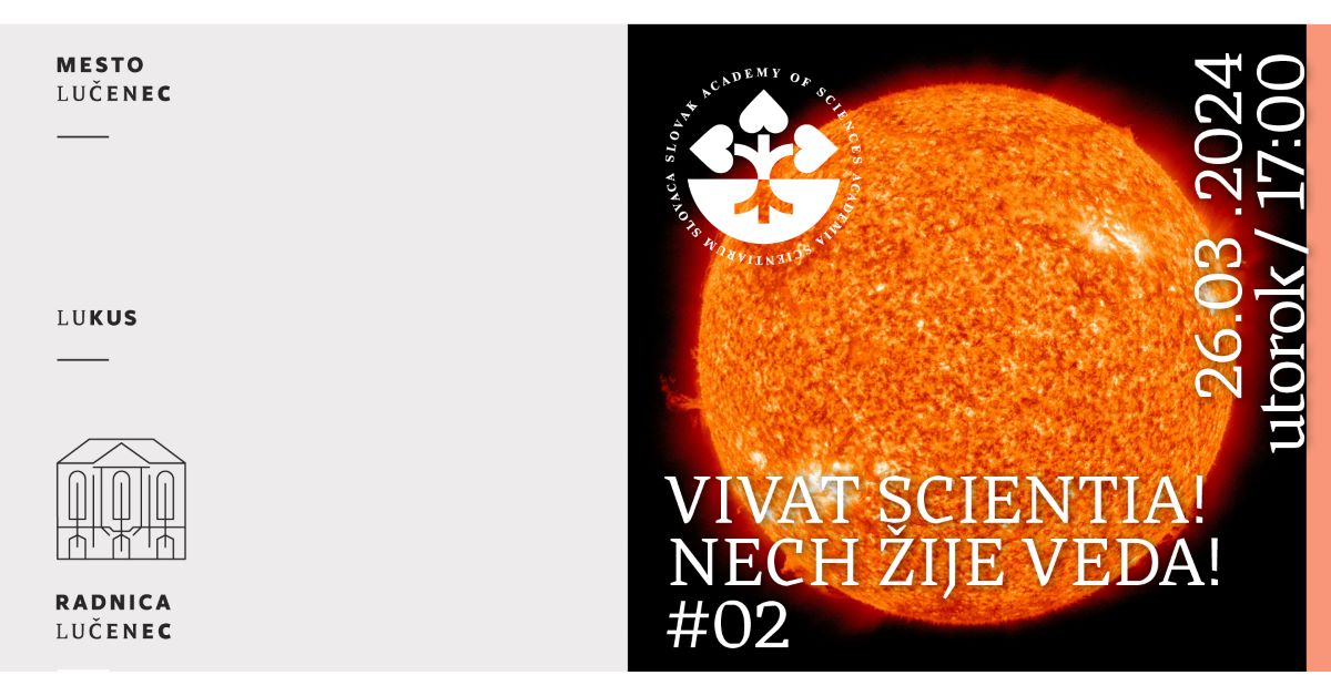 Špičkový výskum zo Slovenskej akadémie vied v oblasti slnečnej fyziky a najnovšie poznatky o Slnku budú témou marcovej prednášky cyklu Vivat Scentia! Nech žije veda! v Lučenci. V utorok 26. marca 2024 o 17.00 hod. sa lučeneckému publiku v Mestskom múzeu na Radnici predstaví riaditeľ Astronomického ústavu SAV, v. v. i. Peter Gömöry.