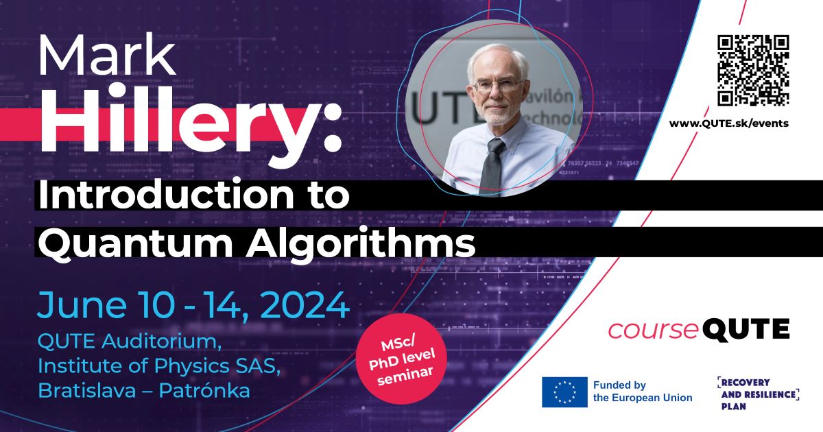 Národné centrum pre kvantové technológie srdečne pozýva na sériu prednášok s názvom "Introduction to Quantum Algorithms", ktoré povedie uznávaný expert v oblasti kvantových výpočtov, profesor Mark Hillery z City University of New York. Prednášky sa uskutočnia od 10. do 14. júna 2024 so začiatkom o 10.30 hod. v Auditoriu QUTE, Fyzikálny ústav SAV v Bratislave.