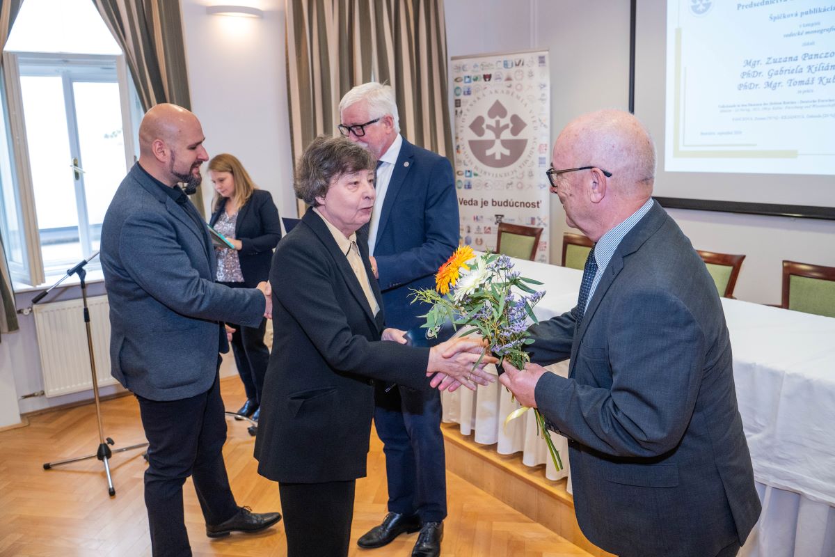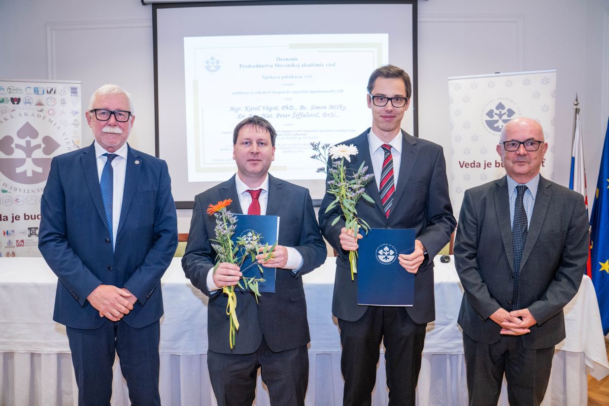 Predsedníctvo SAV aj tento rok hodnotilo úspešných vedeckých pracovníkov a pracovníčky, ktorí publikovali výsledky svojej práce vo vedeckých časopisoch mimoriadnej prestíže. Každoročným oceňovaním špičkových publikácií tak chce stimulovať a oceňovať medzinárodnú viditeľnosť výskumu v Slovenskej akadémii vied. Ceny si z rúk predsedu SAV prof. Pavla Šajgalíka a podpredsedu SAV pre vedu, výskum a inovácie prevzali v stredu 18. septembra 2024 si v Malom kongresovom centre Vydavateľstva SAV VEDA