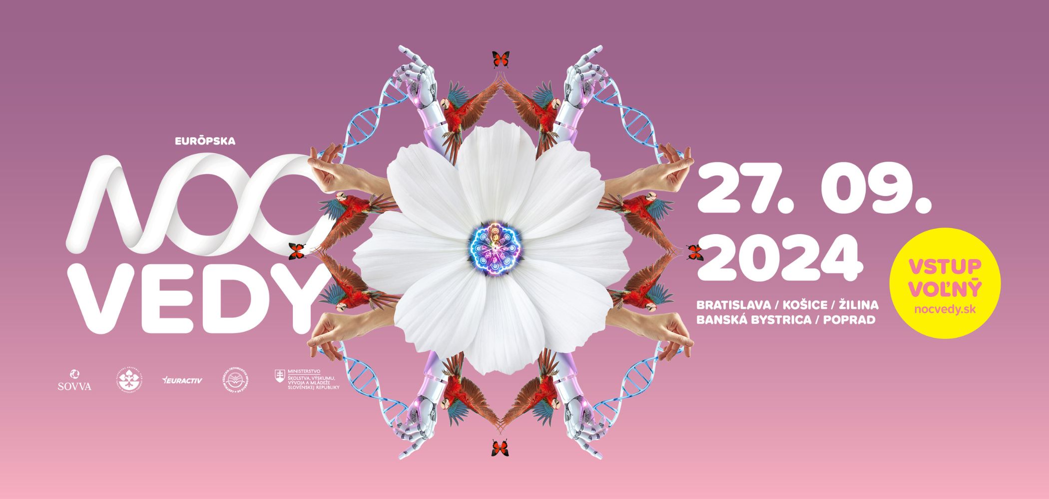 Slovenská akadémia vied (SAV) vás pozýva na Európsku noc vedy, ktorá sa uskutoční v piatok, 27. septembra 2024 v piatich slovenských mestách: v Bratislave, Banskej Bystrici, Košiciach, Žiline a Poprade. Vedci a vedkyne z najväčšej výskumnej inštitúcie na Slovensku sa predstavia v 37 stánkoch a vypočuť si ich môžete v 16 popularizačných prednáškach, workshopoch či panelových diskusiách.