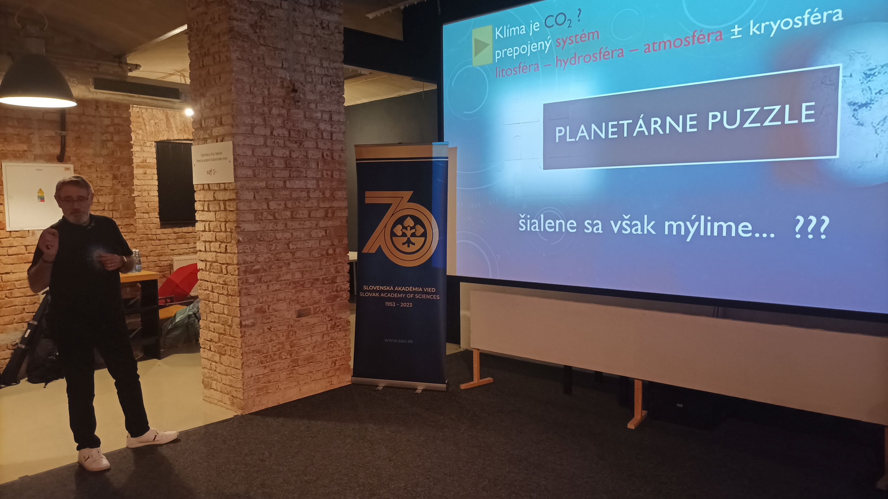 Prednášku a diskusiu v kaviarni najlepšie charakterizujú slová z anotácie prednášky Dr. Simana: „Pre nás je nesmierne dôležité a podstatné pozerať sa na Zem z pohľadu geologického času ako na dynamickú planétu, ktorá sa od svojho vzniku mnohokrát pomerne často menila. Zem má svoje zákonitosti, pracuje v cykloch a ako aktívne planetárne teleso je poháňané vlastným tepelným gradientom s prejavmi pohybov litosférických dosiek, vulkanizmom, čo zaisťuje kolobeh hmoty, s neustálou látkovou a energetickou výmenou medzi atmosférou, hydrosférou a litosférou. Do tohto vyvíjajúceho sa systému neskôr pribudol sneh a ľad v podobe kryosféry Zeme. Hoci už pomerne dobre vieme a poznáme ako tento veľmi zložitý systém pracuje, ako jednotlivé jeho súčasti medzi sebou interagujú; my ľudia, sme jej sféry považovali za mimoriadne robustný a ťažko meniaci sa stroj. No, mýlime sa?