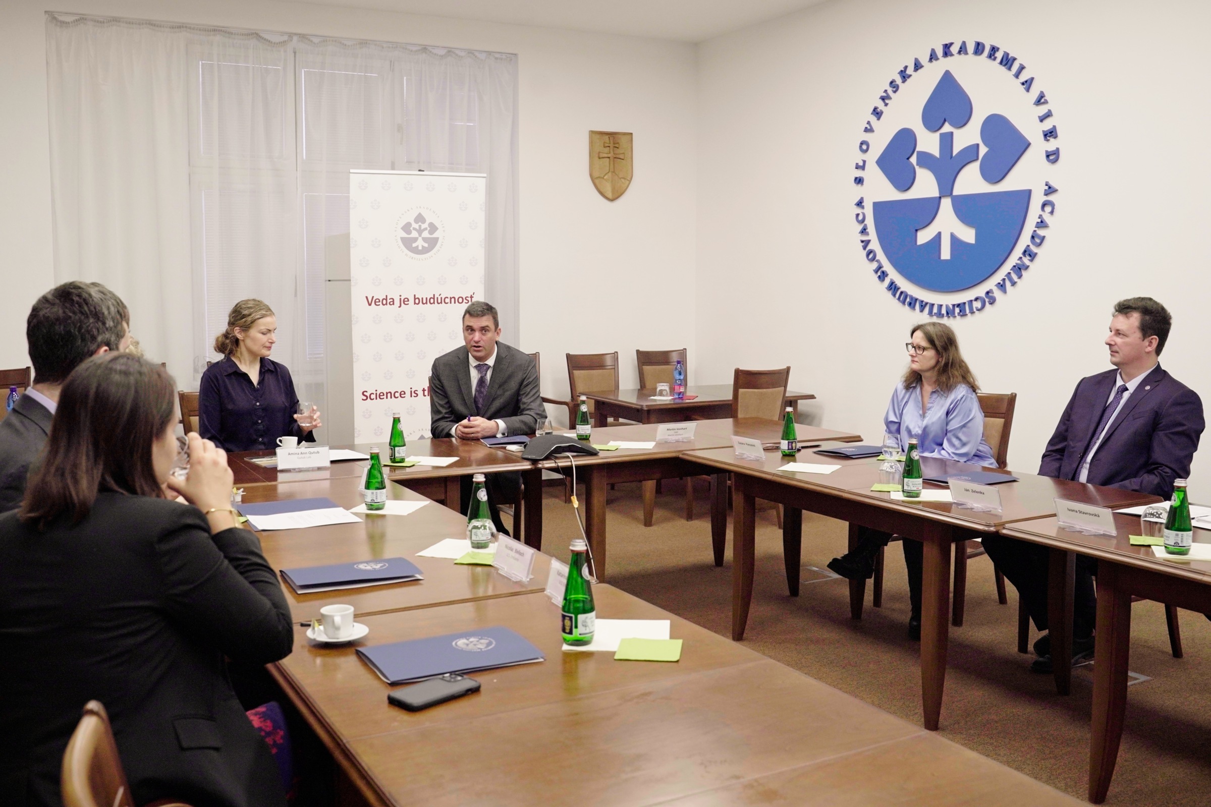 V úvode stretnutia M. Venhart americkej expertke predstavil Slovenskú akadémiu vied, jej fungovanie, organizácie a ich pôsobnosť v jednotlivých vedných odboroch. Rovnako ju informoval aj o cieľoch akadémie smerom dovnútra aj navonok, ktoré majú prispieť k rastu SAV a jej vedeckých pracovníkov. Zdôraznil dôležitosť sociálnych a humanitných vied v súčasnom období najmä s presahom na obrovský rozmach v oblasti umelej inteligencie (AI) či adaptácie na klimatické zmeny. M. Venhart s A. Qutub diskutovali tiež o bezpečnosti vo vede, možnostiach zdieľania vedeckých dát, ako aj regulácii v tejto oblasti v krajinách EÚ a USA. Dr. A. Qutub hovorila o tom, ako AI systémy môžu pomôcť odborníkom z oblasti medicíny, vďaka čomu môžu ľudia aj celé komunity žiť zdravšie, bezpečnejšie a môžu tak dlhšie žiť produktívny život.