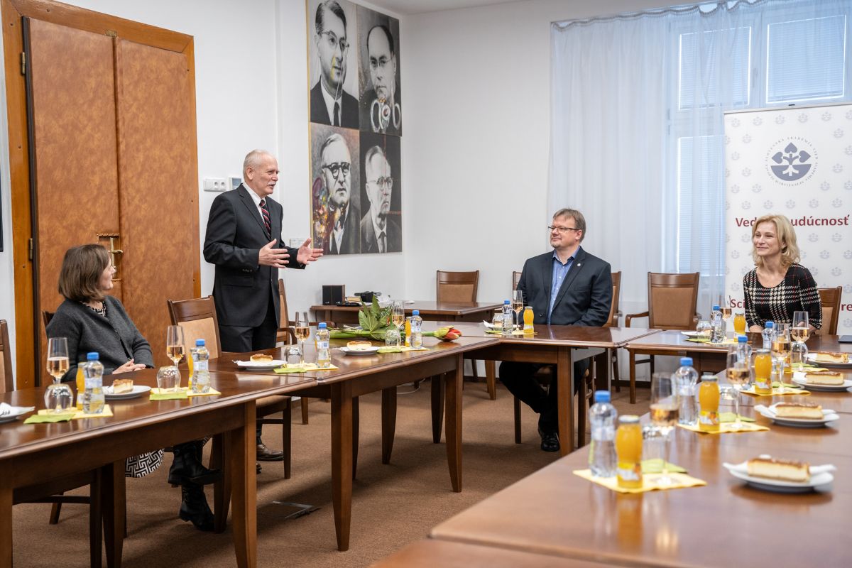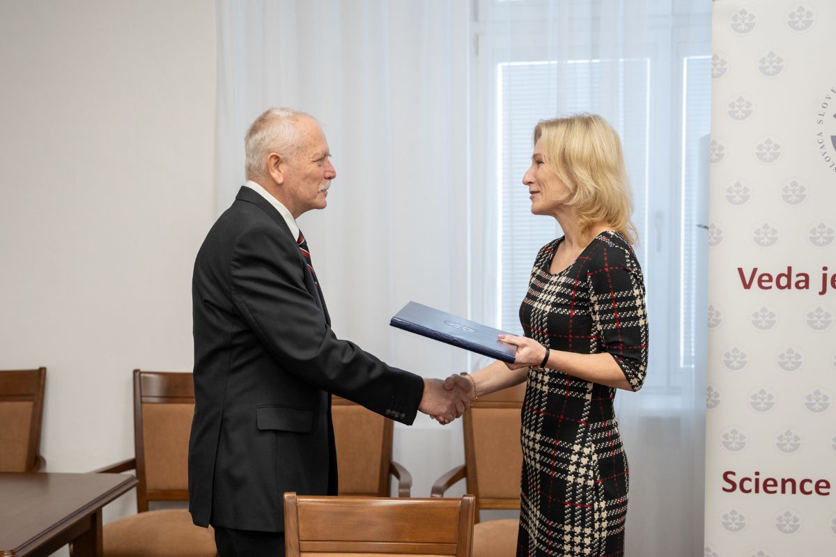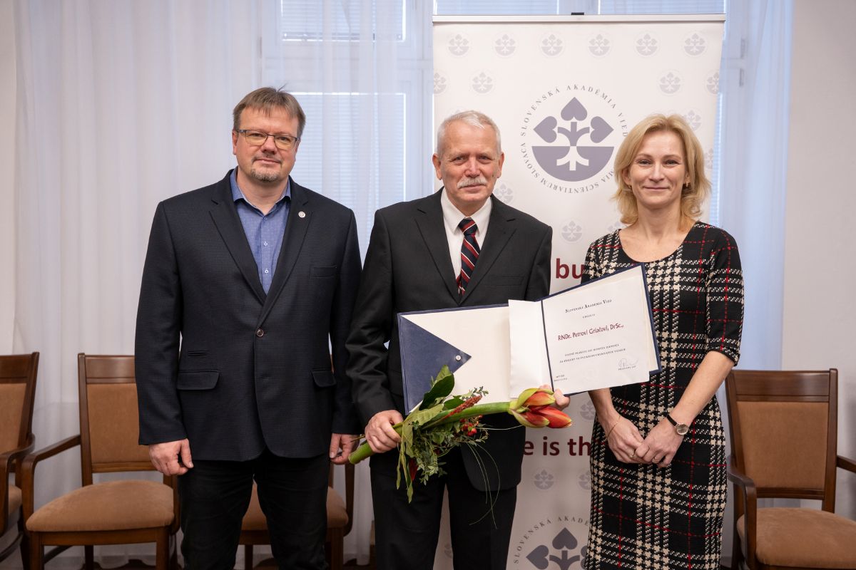 „Stretli sme sa, aby sme ocenili človeka, pracovníka, ktorého vedecké dielo je dôkazom spojenia poznania a tvorivého myslenia,“ uviedla počas slávnostného oceňovania Daniela Antolová. RNDr. Peter Griač, DrSc., patrí medzi popredné osobnosti slovenskej biochémie a bunkovej biológie. Po úspešnom ukončení vedeckej výchovy a získaní titulu CSc. absolvoval trojročný pobyt na Carnegie Mellon University v Pittsburghu (USA), kde pod vedením prof. S. Henryho rozvíjal výskum regulácie biosyntézy fosfolipidov na transkripčnej úrovni. „Táto skúsenosť sa stala pevným základom jeho ďalšej vedeckej práce a formovala jeho dlhodobý záujem o štúdium biogenézy bunkových membrán,“ priblížila podpredsedníčka SAV, ktorá aj prečítala slávnostné laudácio. Po návrate z USA vybudoval na Ústave biochémie a genetiky živočíchov úspešnú výskumnú skupinu, ktorá sa zameriava na viaceré aspekty biogenézy membrán, najmä jej lipidovej zložky. V tejto oblasti dosiahol so svojím kolektívom viacero prelomových výsledkov. „K najvýznamnejším patrí objasnenie funkcie kyseliny fosfatidovej, ktorá pôsobí ako kľúčová signálna molekula regulujúca biosyntézu fosfolipidov. Tento objav zásadne prispel k pochopeniu komplexných regulačných procesov eukaryotickej transkripcie,“ vyzdvihla D. Antolová.
