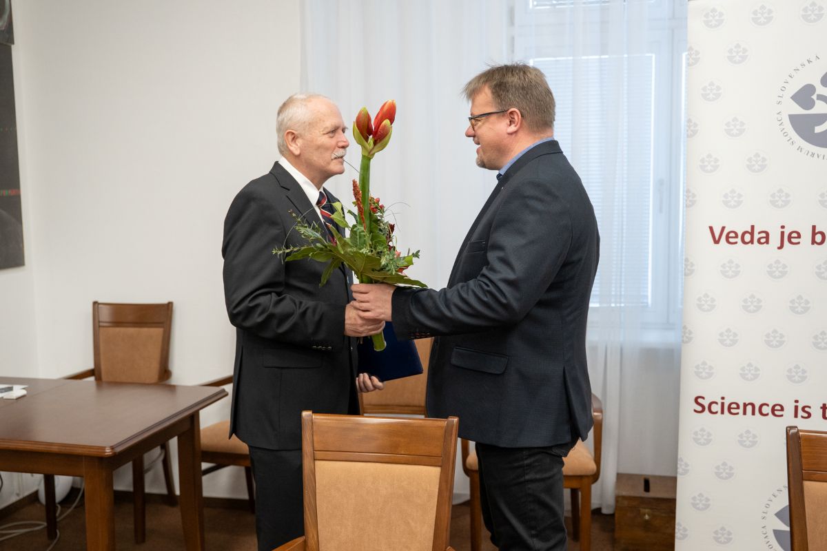 Slovenská akadémia vied udelila Čestnú plaketu SAV Dionýza Ilkoviča za zásluhy vo fyzikálno-chemických vedách RNDr. Petrovi Griačovi, DrSc., z Ústavu biochémie a genetiky živočíchov Centra biovied SAV, v. v. i., a Mgr. Zdenkovi Špitálskemu, PhD., z Ústavu polymérov SAV, v. v. i. Ocenenie odovzdala podpredsedníčka SAV pre 2. oddelenie vied Daniela Antolová, prítomný bol aj člen Predsedníctva SAV Miroslav Blaženec.