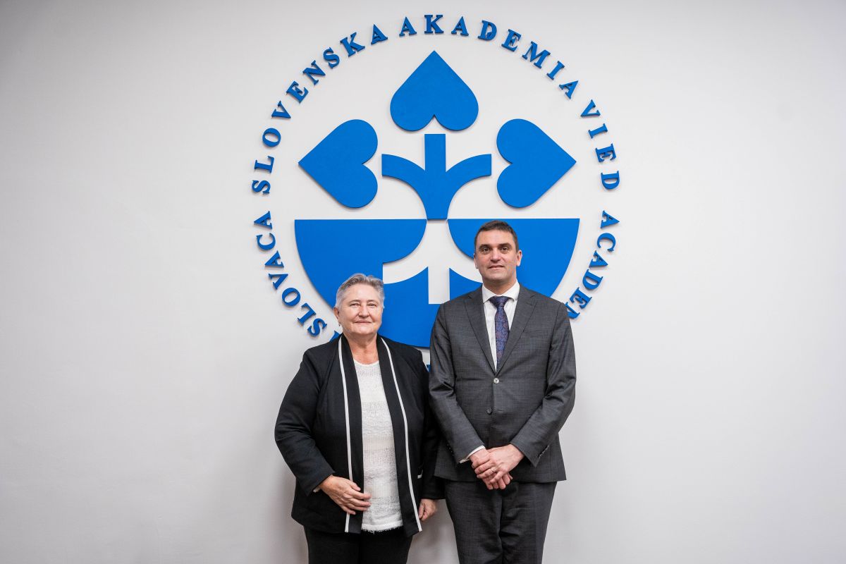 Predseda SAV Dr. Martin Venhart prijal v utorok 25. novembra 2025 na pôde SAV predsedníčku Úradu pre Slovákov žijúcich v zahraničí (ÚSŽŽ) Ing. Dagmar Repčekovú. Hlavným bodom stretnutia bolo podpísanie Memoranda o spolupráci medzi SAV a ÚSŽŽ.