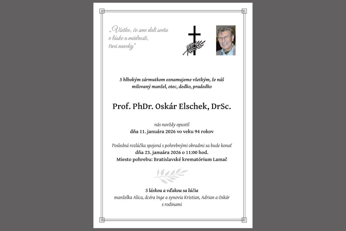 V sobotu 10. januára 2026 zomrel vo veku 94 rokov bývalý riaditeľ Ústavu hudobnej vedy SAV, v. v. i., prof. PhDr. Oskár Elschek, DrSc.